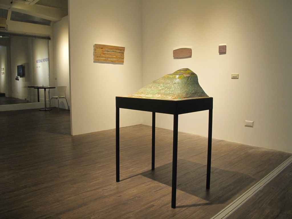 一種島嶼內部的移動,透過時光刻畫在身體的經驗,想像尋找內心一塊自我風景。是心靈也是肉上的感動是一塊時間記憶也是存在的證明。這個世界抓取訊息符號越來越快速,所以手感或自身的感動好像越來越少,希望透過知覺的敏感去體量這個世界的溫度。用慢的速度去記錄製造風景。藉由堆疊顏料讓自我對日常生活越來越趨近於機械式動作反應在作品上。身體經由物質材料堆疊可以去感覺、面對時間 的流逝。