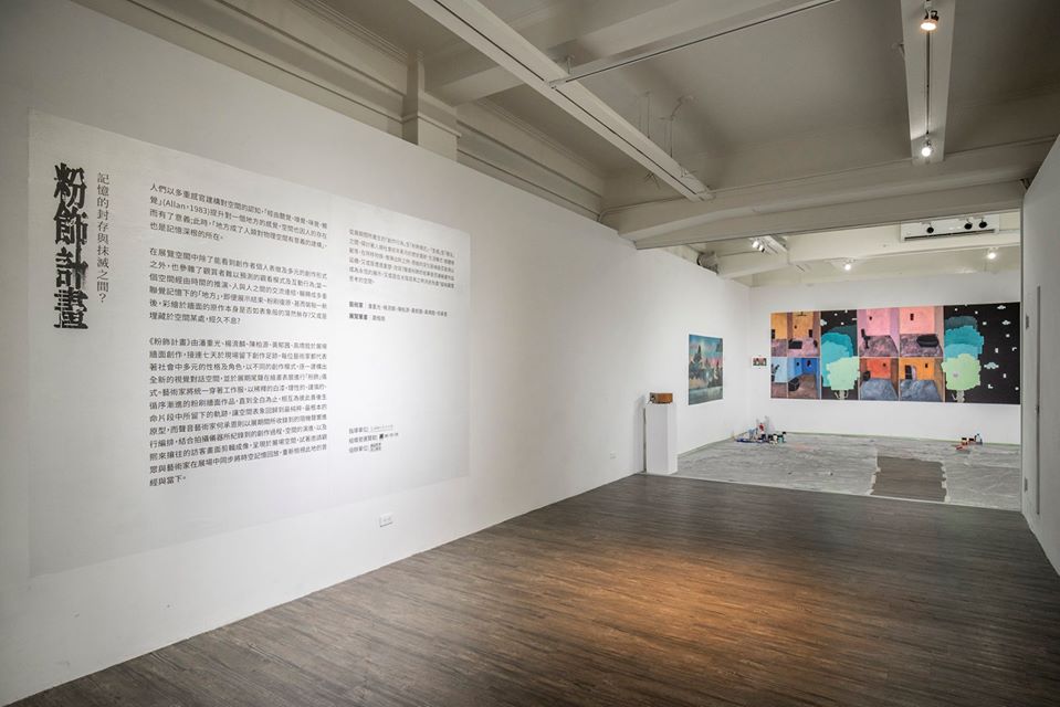 《粉飾計畫》由潘重光、楊淯麟、陳柏源、黃郁茜、高堉銓於展場牆面創作,接連七天於現場留下創作足跡,每位藝術家都代表著社會中多元的性格及角色,以不同的創作模式,逐一建構出全新的視覺對話空間,並於展期尾聲在繪畫表層進行「粉飾」儀式。藝術家將統一穿著工作服,以稀釋的油漆,理性的、謹慎的、循序漸進的粉刷牆面作品,直到全白為止,相互為彼此善後生命片段中所留下的軌跡,讓空間表象回歸到最純粹、最根本的原型,而聲音藝術家何承恩則以展期間所收錄到的隨機聲響進行編排,結合拍攝儀器所紀錄到的創作過程、空間的演進、以及熙來攘往的訪客畫面剪輯成像,呈現於展場空間,試著邀請觀眾與藝術家在展場中同步將時空記憶回放,重新檢視此地的曾經與當下。