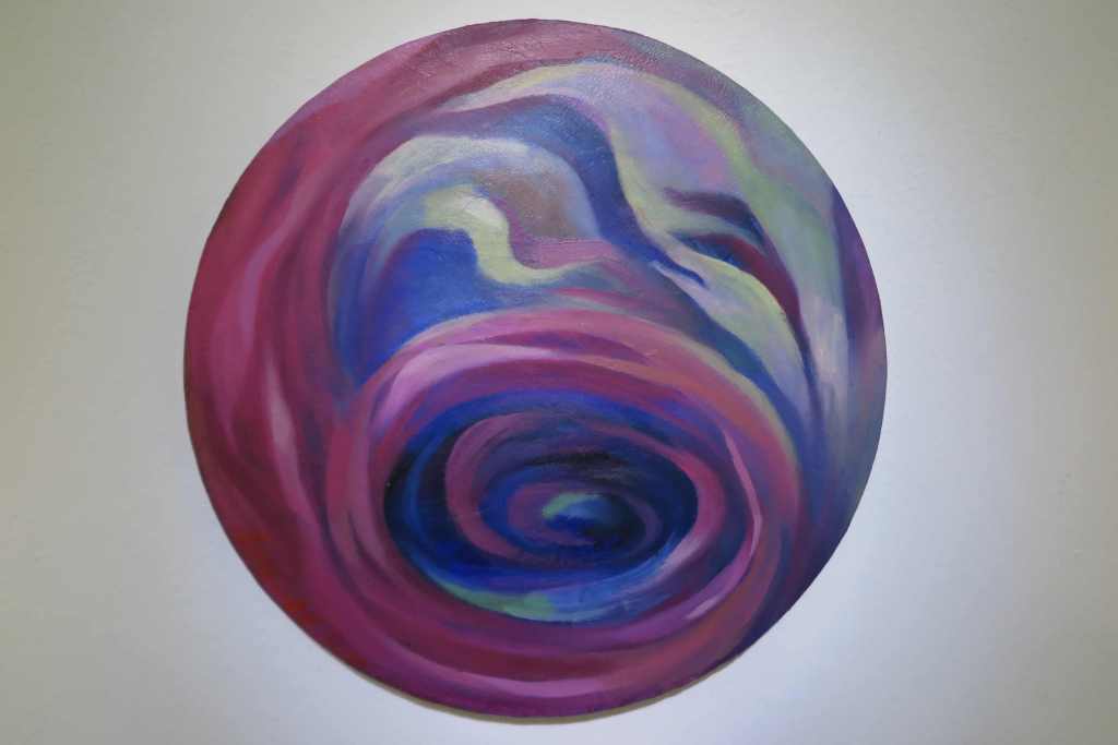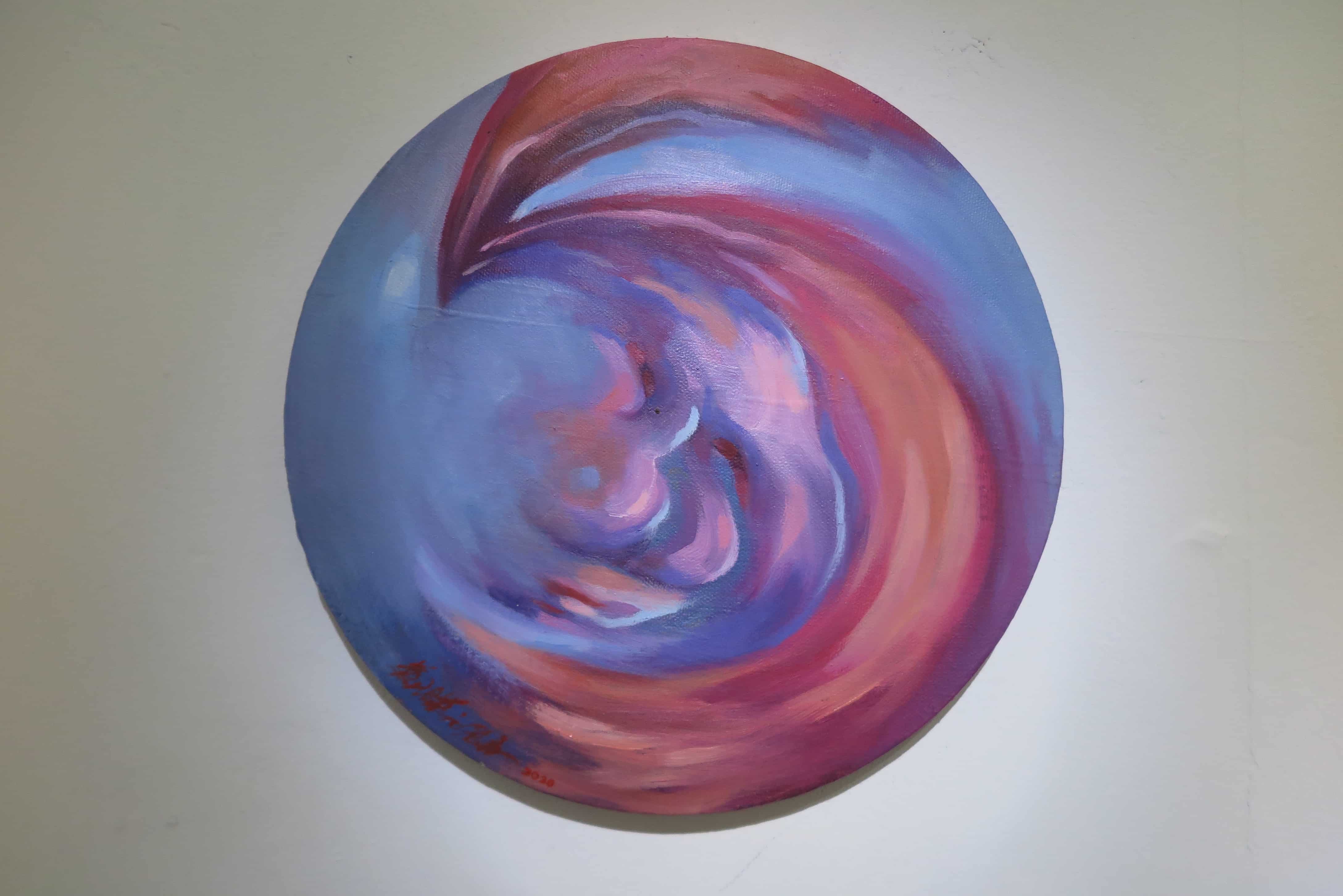 我用的色與形似乎已顯得過了時氣,但慣習終究是習氣,難得能自我省視一番,在曲光中探得一點點的出口的指示引領,站在這習氣雲團上,邀請未來入畫!