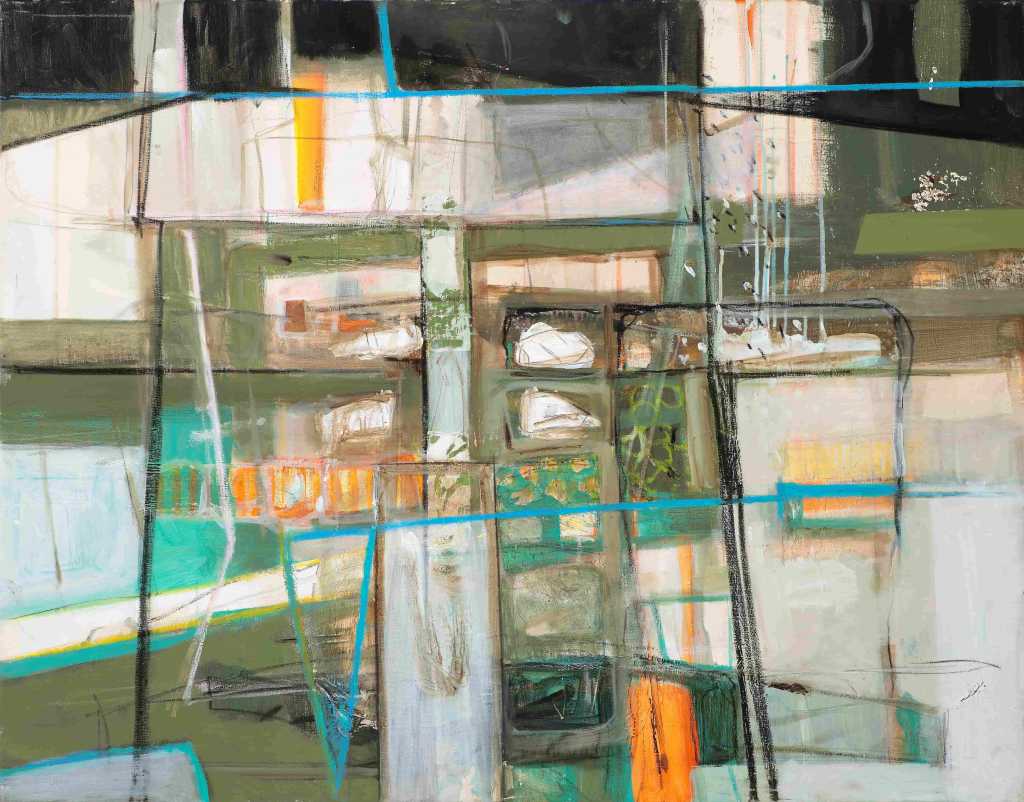 林熺俊的最新創作,精確的呼應其作品是多重時空交錯匯聚,並經由其建構畫面的意向,形成獨特的結構與秩序,隱約呈現理性的幾何結構形式。因此空間、幾何的融會,儼然成為他的創作風格,當面對作品時總是來回的探索、自省反詰。以空間結構的色彩線條,呈現與當下不同的獨特語彙。畫面中隱約可見創作者內心對於自然崇尚的山水樣態,同時也在畫面中尋找空間結構的延展可能。