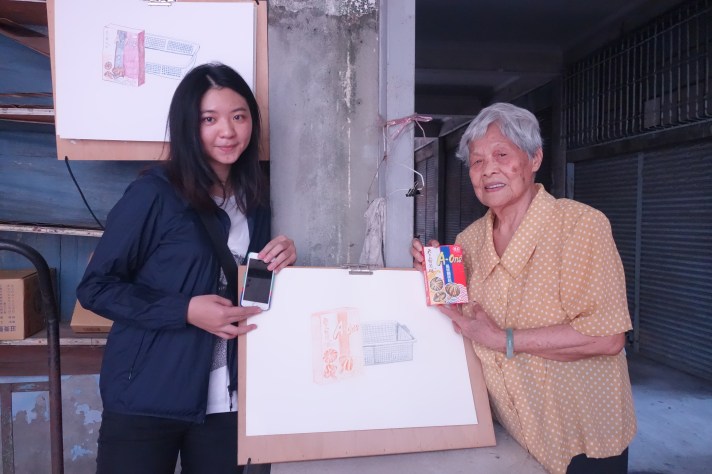 珮瑜找了身邊的朋友佳欣,到市場寫生,與珮瑜阿嬤合影(圖片:李珮瑜提供)