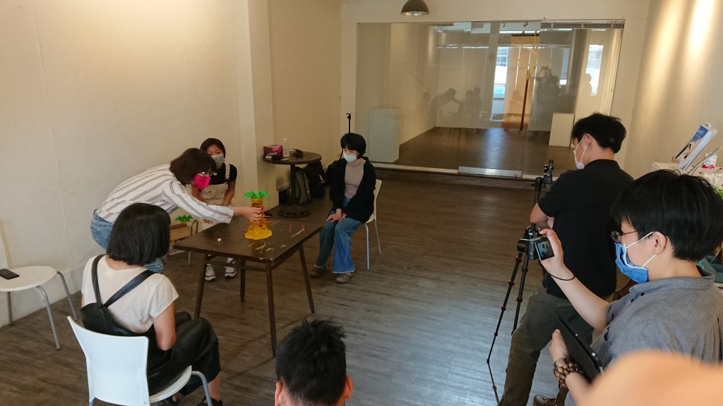 在促進公民參與主軸上,舊港團隊與新浜尋找適合的公共討論方式,在社群培力的過程中,採漸進式深化舊港團隊在2019年3月接觸鹽埕老人活動站的佛臨濟助會後,成為社群連結擴展的開始。首先,因應需求於2019年7月份開設了桌遊課程,針對活動站志工與研究助理訓練的設計培力工作坊,便舉辦在新浜,逐漸引入了在地中高齡社群;稍後,由於桌遊課的奠基,在2019年9月至12月間,舊港團隊與新浜藝術家李珮瑜、高美館協力,進入活動站開設手工藝課程,年底與在地店家聯合的成果策展「埕樂會」。而與再帶領藝術家進入社區的合作其中,著實讓筆者難忘的,莫過於疫情期間,由湯皇珍老師帶領的「成忘老太太」的午茶時間,從事前接洽到完成,除了顧慮到疫情,還有現場長輩的狀況,充分尊重計畫與社區成員。而湯老師在展演互動後,開創出臨時對話的空間,與參加的長輩對於老後記憶衰退等的過程產生了共鳴、連結,一時之間,長輩此起彼落抒發對於老年生活的想法,交換心得。筆者見習到新浜藝術家如何形成開放式場域的方法,也有了彼此所經營的社群相互串聯、交流的機會。