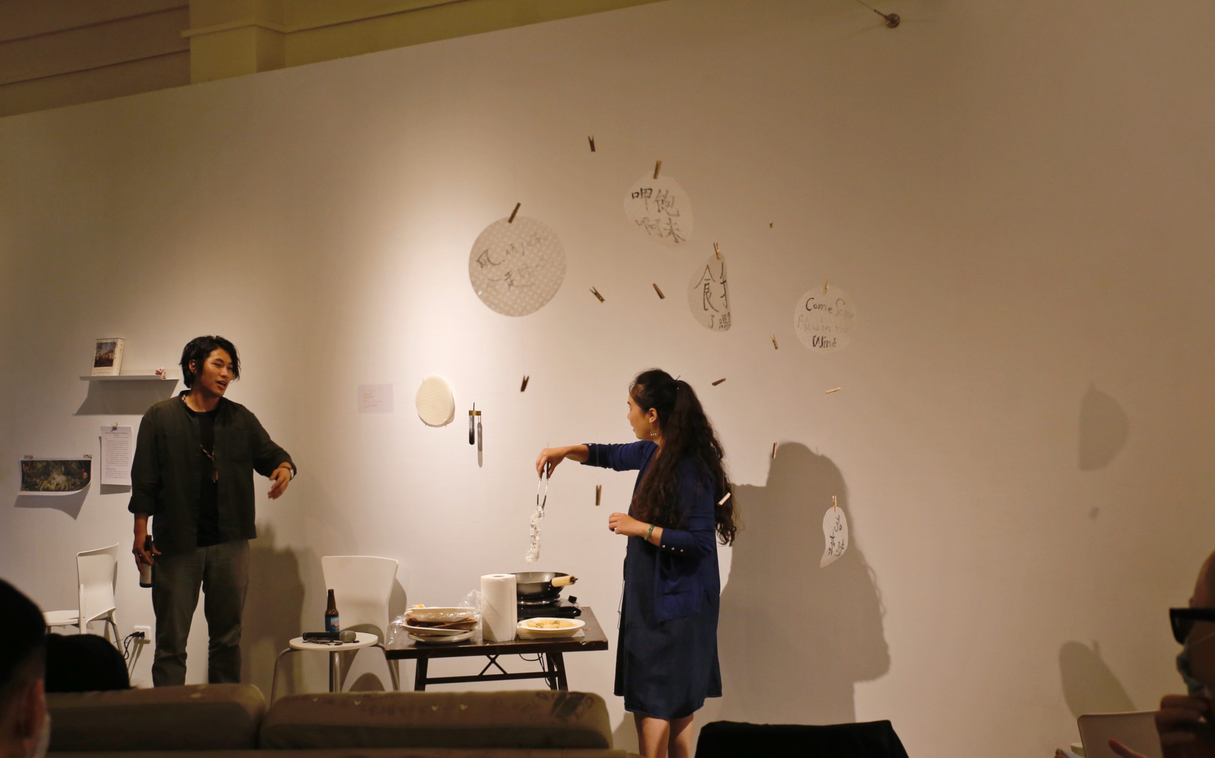 邀請觀眾以食用竹炭墨水在米餅上寫下提問。行動中,炸米餅同時回答提問,油炸的氣味散佈在展場。觀眾吃下扭曲提問的米餅,也帶走全身氣味的痕跡。