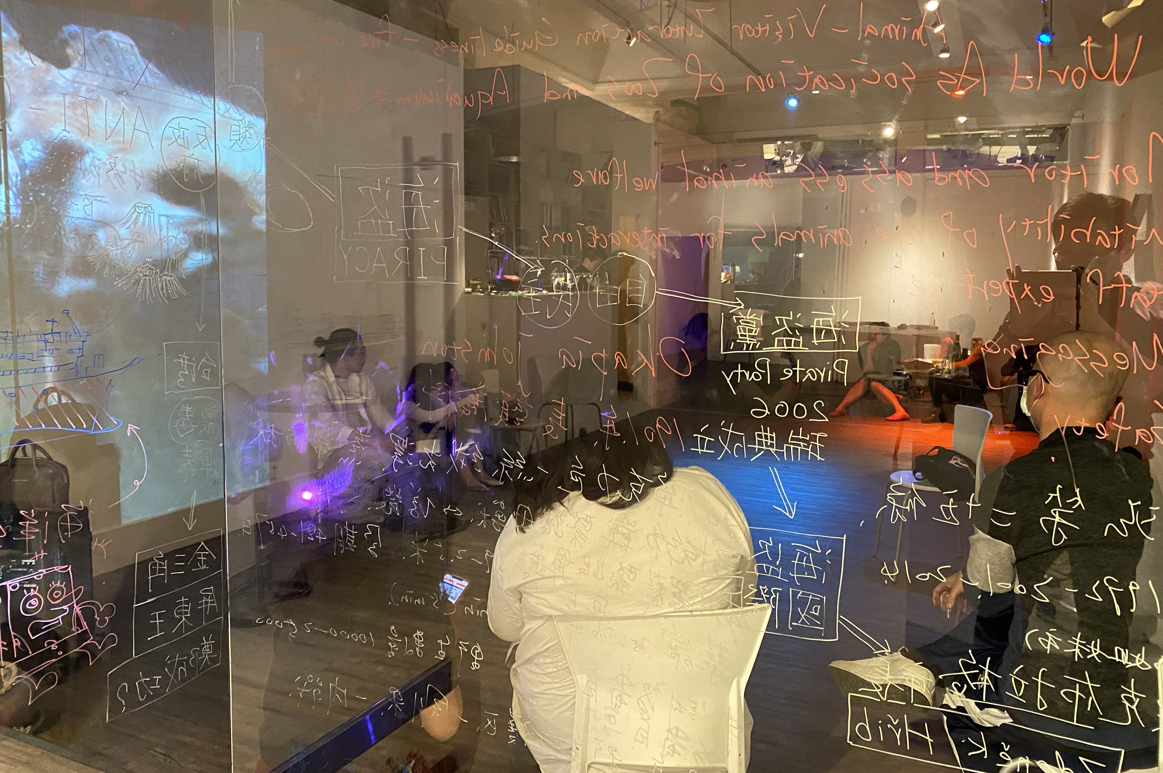各自長期關注「動物」與「海洋」議題與不同形式媒材,卻同時採取研究導向創作方法的兩人,透過架構出一個互為表裡的陳述場域,以限時接力的形式拋接著多媒體與發聲權、書寫與肢體勞動的行為。