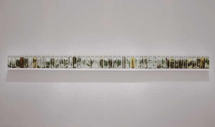 在此路-界線上閒散逛遊,曾琬婷在此成了一位閒逛者(flaneur),遊蕩、微觀、觸碰、採集和探索著這些海岸植物,用繪畫去記錄跟這些植物邂逅的當下,牽動出海洋、島嶼歷史、自然生態和環境文化的詩性觀照。相較於過去壓花技術的繁複與時延性,曾琬婷轉以繪畫來表現這些植物,顯得更為直覺直接而激情,即時的描繪了視觸覺的感動,遂而逐步開展出「濱海植物」、「植物肖像計劃」和「珊瑚礁地景」等繪畫創作之面向。同時,也透過這般日常的閒逛過程,再度將10多年前的「奚卜蘭島」探索行動計劃召喚而出,重新凝視其《瓶裝風景》系列裝置作品,來跟當下的繪畫思考對話,透過壓花技術來處理採集植物之材料,轉換編織成立體裝置型態,做為身處南島文化、歷史與自然環境的回應。