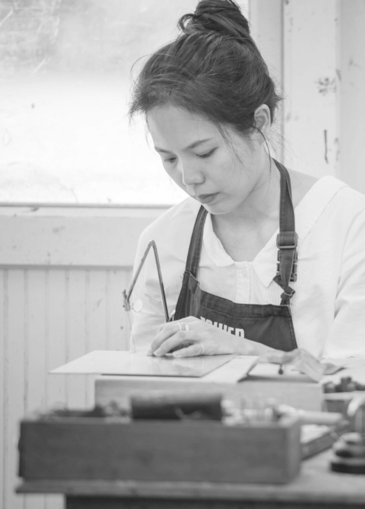 1971年生,高雄人,1993年畢業於天主教輔仁大學應用美術學系,2000年畢業於國⽴臺南藝術⼤學應⽤藝術研究所(M.F.A.),現職長榮大學美術學系助理教授級。於2018年開始以北大武山脈周邊路線出發,平均每月一次的踏查中漸次領略山神造就之天地;試圖演繹可透過材質與技藝中傳遞大地生息、蝕解姿態中的創作形式…..,繼而以自然界礦物提煉出中的金屬,漆樹汁液,天然棉麻等材質,由融鑄,鍛敲,腐蝕,焊接與髹繪,編織等工藝技法反覆施作、塑造後磨顯,幽黯疊影層次中描繪仿如物種於時空中交錯紛沓的婆娑姿態。