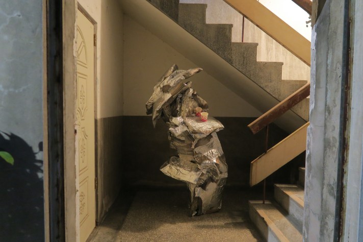 今年新浜又換了一個行政姐姐。她應該很緊張,展覽要到了一直催不出像作品的東西。我又不愛接電話,因為在做阿宇展覽的台座時摔到它,它總有機械聲喀拉喀拉的。所以我對她很抱歉,畢竟她新來的。但這次扣除我對不喜歡事的愛拖,我真的想像不到展場會長怎樣。唯一確認的就是當初的那面假牆我很想把它拆掉,使用這麼多年它已經搖搖欲墜了。八年來大家怎都不會想拆它?可能